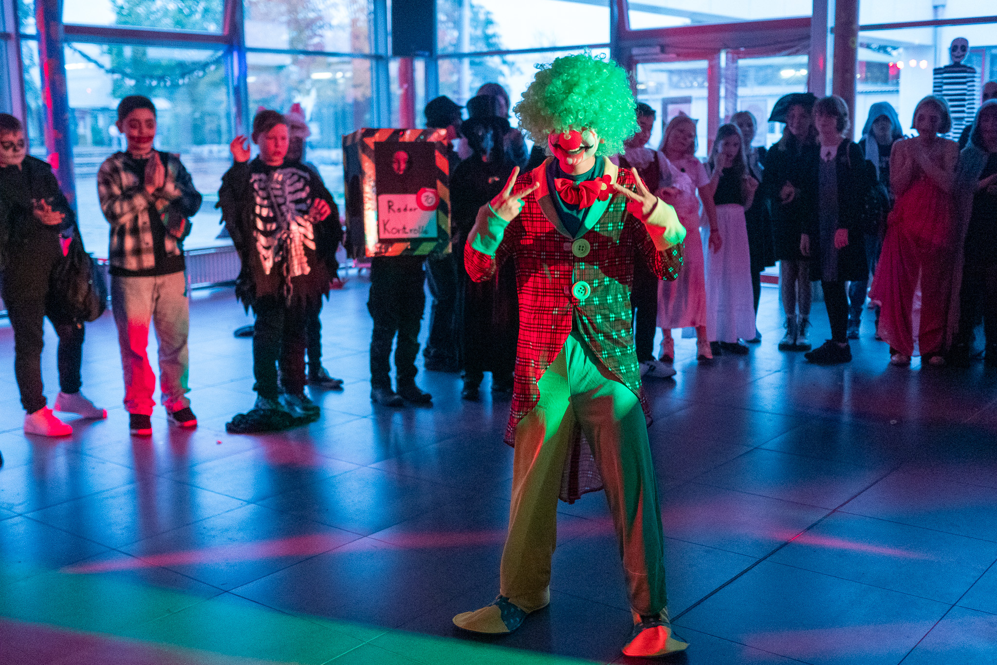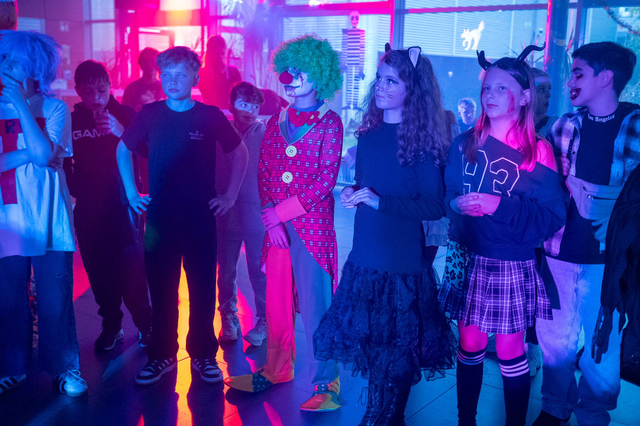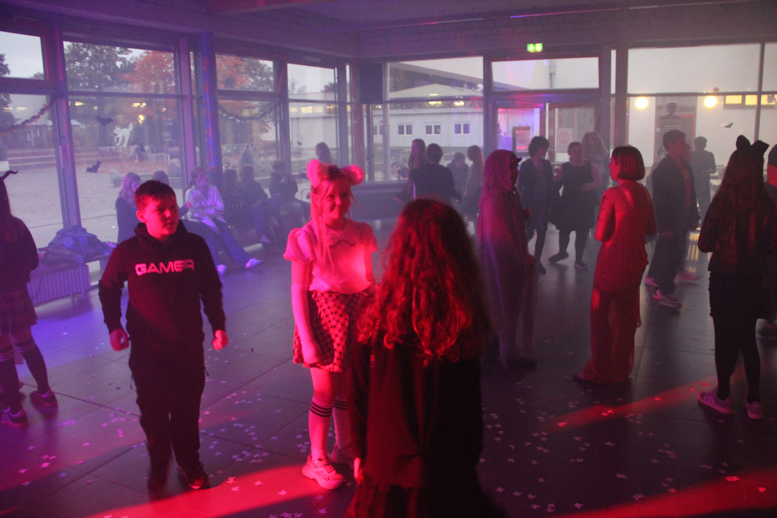 Die Party startete am Donnerstag, den 14.10.25 um 17 Uhr. Die Schülerinnen und Schüler des 5., 6. und 7. Jahrgangs sind zahlreich erschienen, um gemeinsam Zeit zu verbringen, zu tanzen und die leckeren Snacks zu genießen. Spiele und andere Aktivitäten, bei denen Preise zu gewinnen waren, wurden von der Schülervertretung vorbereitet. Die Stimmung war schaurig und ein perfekter Einklang auf die Herbstferien. Gegen 19 Uhr machten sich alle Gäste auf den Heimweg und das große Aufräumen begann.
