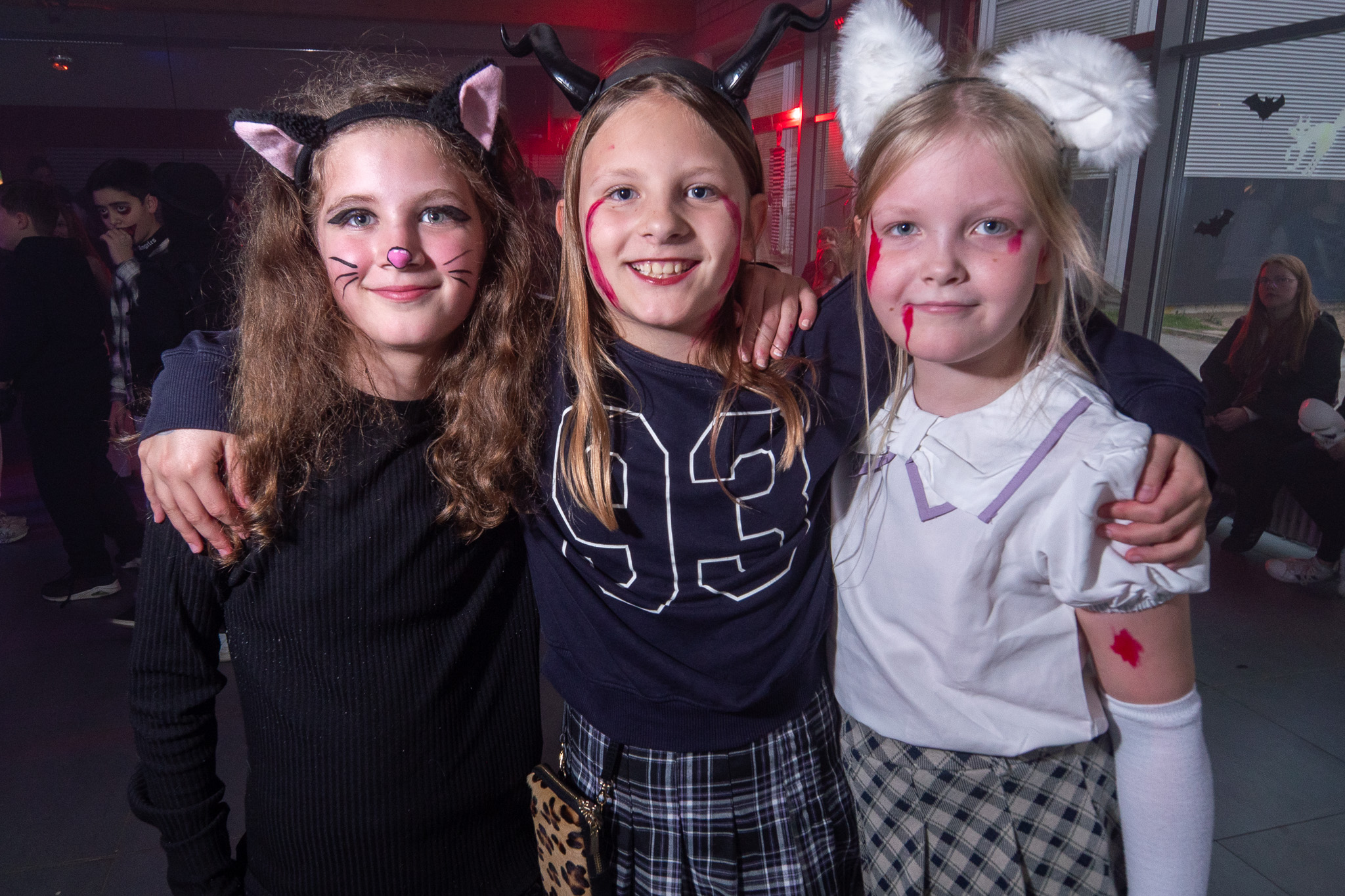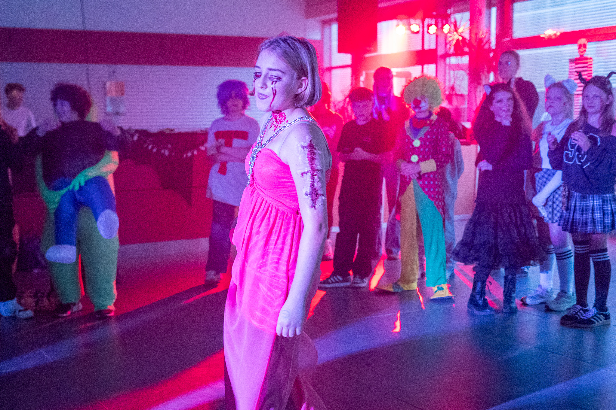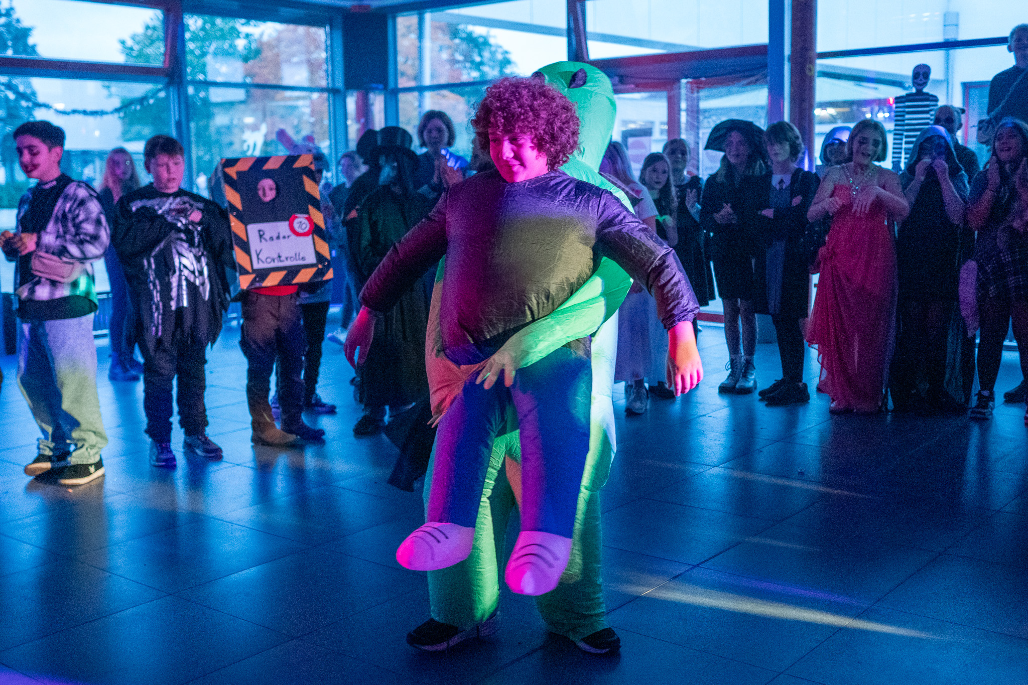 Die Party startete am Donnerstag, den 14.10.25 um 17 Uhr. Die Schülerinnen und Schüler des 5., 6. und 7. Jahrgangs sind zahlreich erschienen, um gemeinsam Zeit zu verbringen, zu tanzen und die leckeren Snacks zu genießen. Spiele und andere Aktivitäten, bei denen Preise zu gewinnen waren, wurden von der Schülervertretung vorbereitet. Die Stimmung war schaurig und ein perfekter Einklang auf die Herbstferien. Gegen 19 Uhr machten sich alle Gäste auf den Heimweg und das große Aufräumen begann.