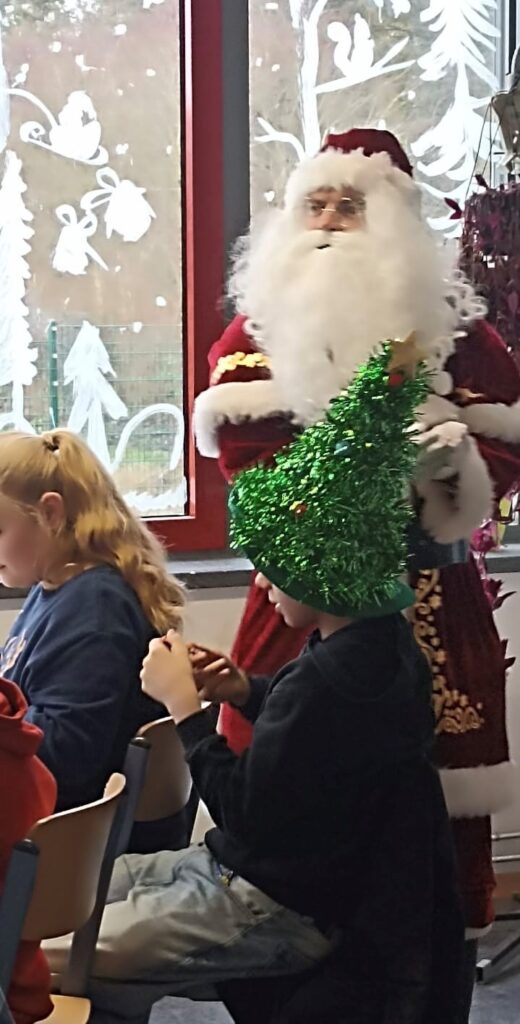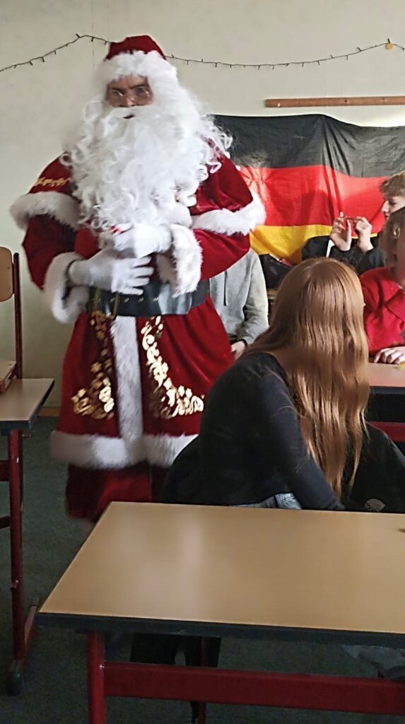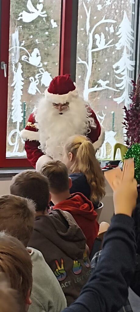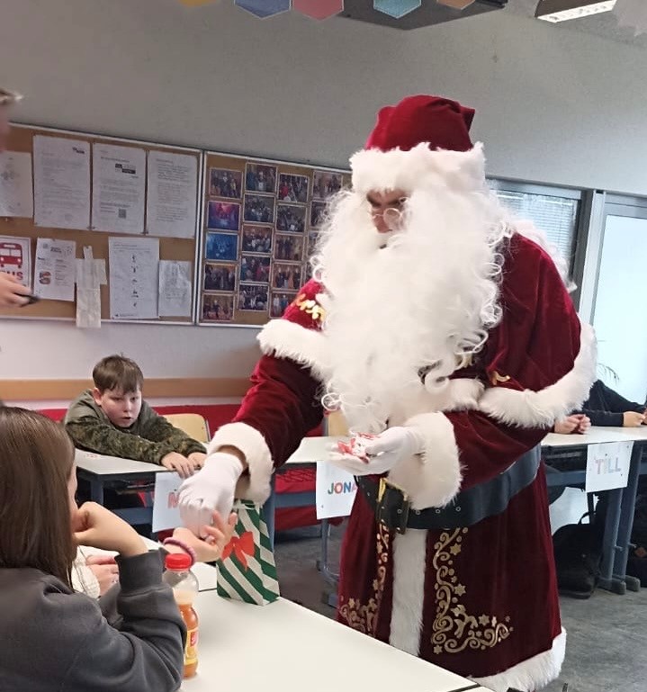 Der Weihnachtsmann ist am letzten Schultag persönlich bei uns vorbeigekommen und hat kleine Schoko-Weihnachtsmänner verteilt.