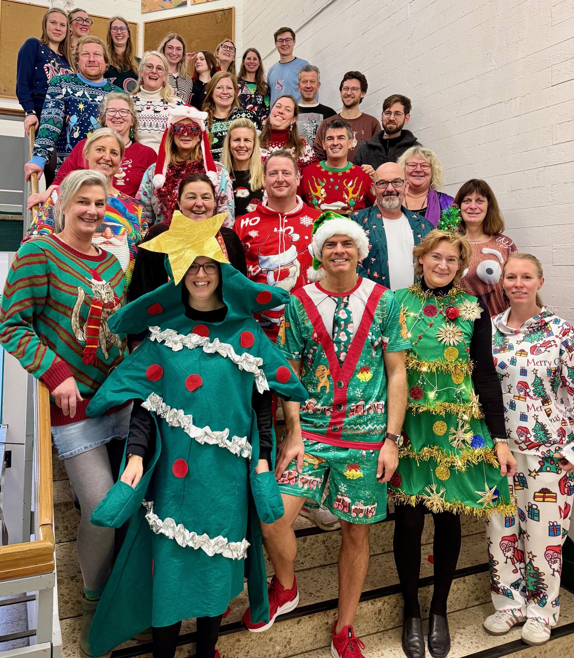 Da staunten wieder viele Schülerinnen und Schüler am letzten Schultag. Viele ihrer Lehrkräfte waren sehr weihnachtlich gekleidet… Das hatte auch einen guten Grund. Auf Initiative von Frau Callsen wurde unter den Lehrkräften der vierte inoffizielle ugly christmas contest durchgeführt…