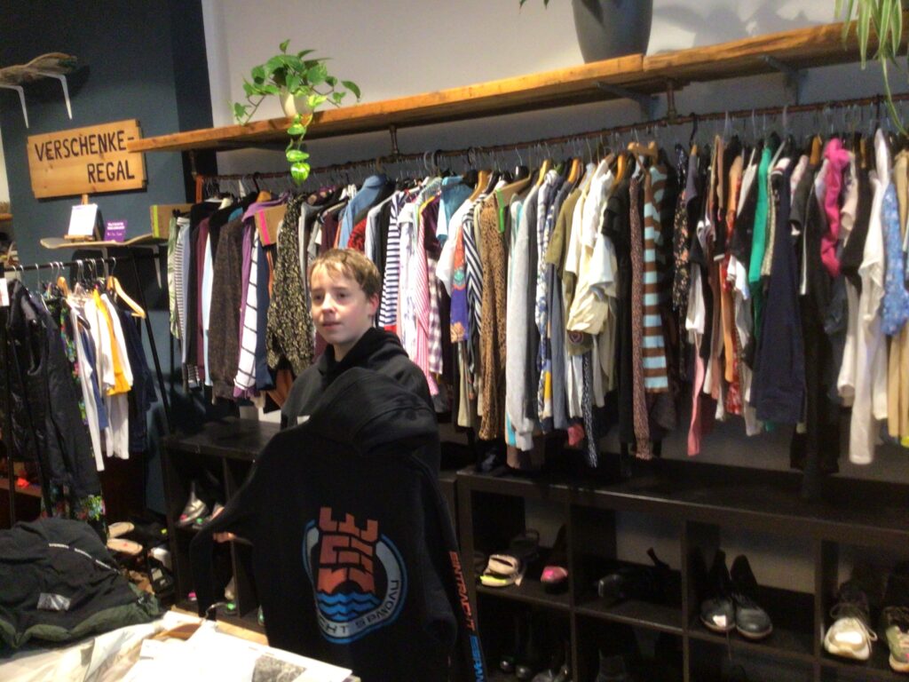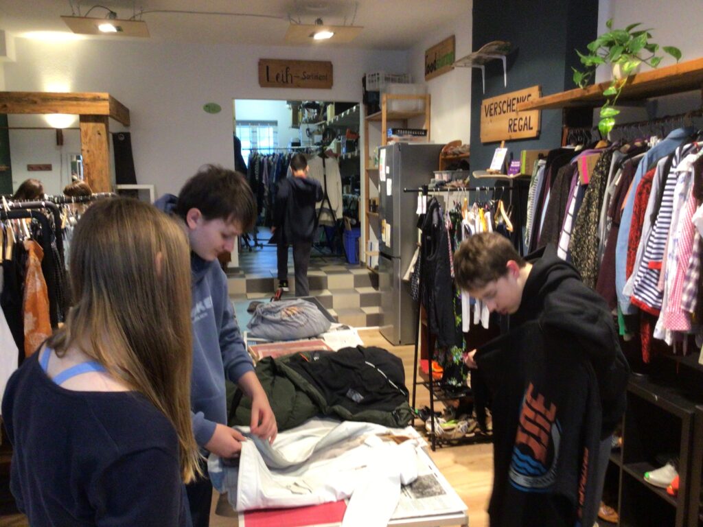 Der Ausflug in diesen besonderen Secondhand-Laden passte sehr gut zu dem Kerninhalt des WPUs „Fit for Future – Zukunftswerkstatt für nachhaltiges Leben“. Denn in diesem Unterricht werden Möglichkeiten gesammelt, wie wir in unserem Alltag nachhaltiger leben können.